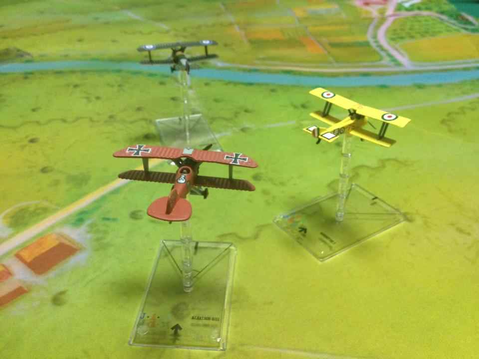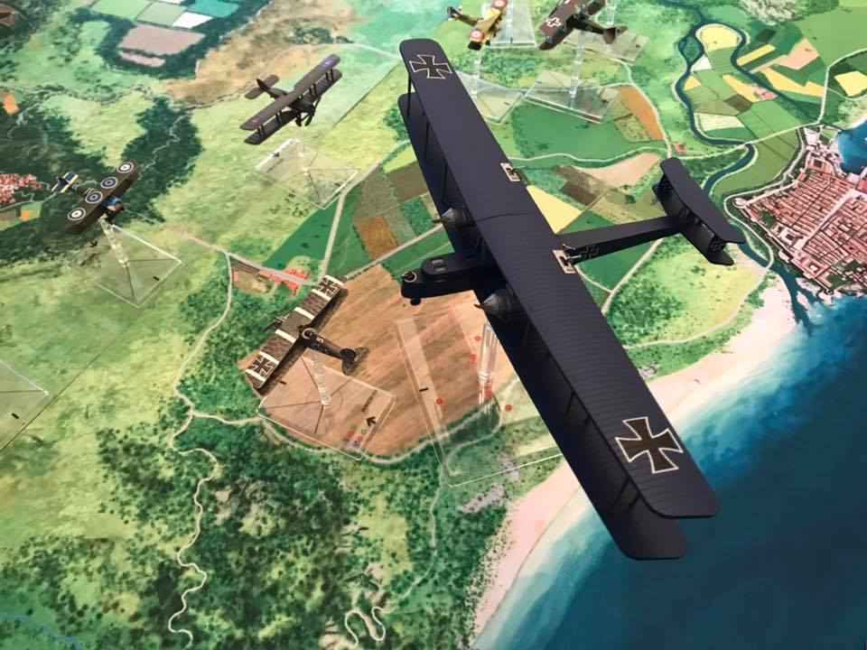 In Wings of War il Sopwith Camel gira meglio a destra che a sinistra, perché ha un motore rotativo che fa questo effetto. Anche il Fokker Dr.I: ma un po’ meno, perché la forma della coda corregge la tendenza a virare a destra. Il Fokker D.VII riesce a ruotare sul posto “appendendosi alla coda”. Ciascuno di essi muove sul tavolo a velocità maggiore o minore, secondo la diversa velocità degli autentici aerei rappresentati. Tutto questo nelle simulazioni precedenti degli anni ’70 od ’80 era affidato a punteggi da spendere, tabelle, diagrammi di costi differenziati per girare, regolette particolari e così via, che il giocatore doveva prima studiare e poi amministrare, in Wings of Glory basta seguire la regoletta “prendi il mazzo manovra del tuo aereo e scegli in segreto tre carte”. Tutto il resto è gestito dall’assortimento, dalla lunghezza e dalla forma delle frecce disponibili per ciascun apparecchio.