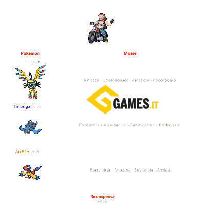 A questo punto dovreste essere pronti per affrontare il capopalestra, Komor. Tornate alla città iniziale ripercorrendo il percorso 19. Lungo la strada incontrerete Nardo che vi regalerà 5 Baccarancia.