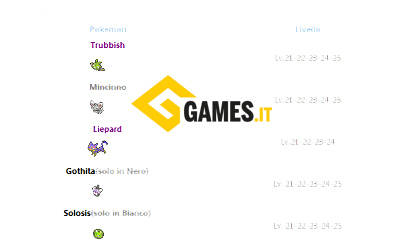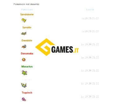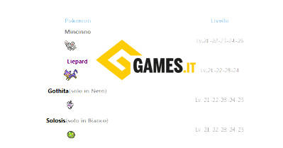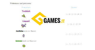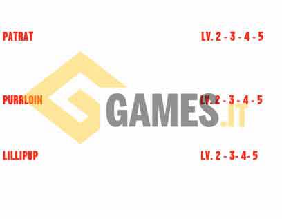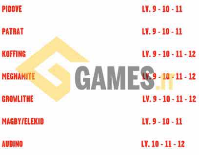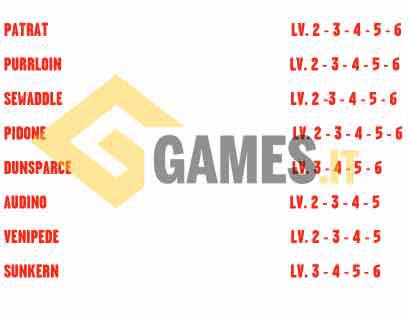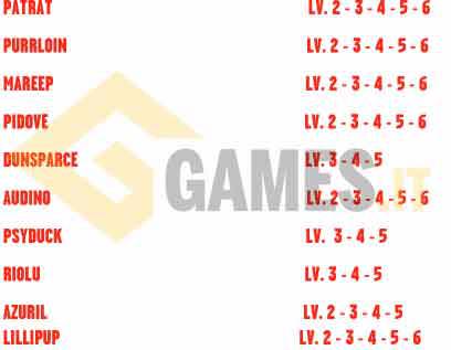 Nell’erba di colore scuro troveremo i seguenti Pokemon.