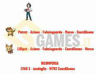 Il nostro rivale e il propietario el cane ci raggiungeranno poco dopo e una volta ripreso il cane se ne andranno ognuno per la propria strada. Ora potremmo tornare da Nardo, che ci lascerà entrare nella scuola Pokemon e ci presenterà i ragazzi che sfideremo.