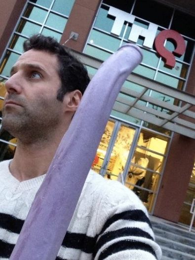 Se l’immagine appena sopra vi può sembrare bizzarra, è perchè non avete familiarità con la serie Saints Row, di cui il dildo è una sorta di mascotte, nonchè arma utilizzabile nel terzo capitolo. Rubin, prima di lasciare definitivamente il suo uffici presso il publisher ormai fallito ha portato via tra i suoi effetti personali anche il suddetto dildo, evitando così che finisse nell’asta giudiziaria che sancirà la fine, ahinoi definitiva, di THQ.