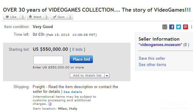 La descrizione su ebay recita così: “Dopo una vita passata a collezionare videogiochi decido di vendere la mia intera collezione. Non posso fare altro, ho troppe cose e lo spazio a disposizione è finito tanto tempo fa. “