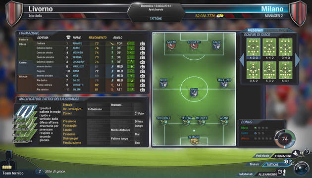 Metti in pratica la tattica che hai sempre avuto in mente. Scegli lo schema di gioco o mettine a punto uno tuo. Giocherai di contropiede o punterai sul possesso palla? Vuoi che la tua difesa marchi a uomo nelle giocate a palla ferma o preferisci una difesa a zona? La squadra giocherà secondo le tue scelte ed ogni calciatore svolgerà sul terreno di gioco il ruolo specifico che tu gli avrai assegnato.