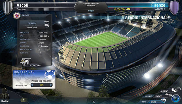 Gestisci la tua società per renderla una delle grandi d’Europa. Guadagnati la fiducia dei direttivi con una gestione economica oculata che ti consenta di ingrandire lo stadio e ottieni l’appoggio dei tifosi fissando dei prezzi ragionevoli per i biglietti, realizzando ingaggi che rafforzino la squadra e conquistando gli obiettivi prefissati. Metticela tutta se non vuoi essere il primo manager ad essere licenziato prima della fine della stagione.