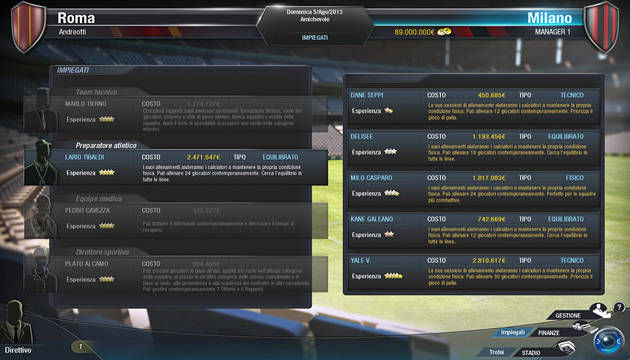 Ingaggia i migliori assistenti che le tue finanze ti consentano. Ricevi informazioni cruciali nei momenti decisivi; per esempio, ti consigliano di riservare il tuo miglior giocatore quando è minacciato di diffida per aver accumulato cartellini.