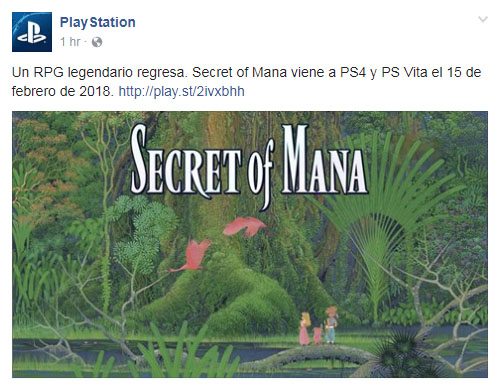 “Un RPG leggendario fa il suo ritorno. Secret Of Mana arriverà su PS4 e PS Vita il 15 Febbraio del 2018.”