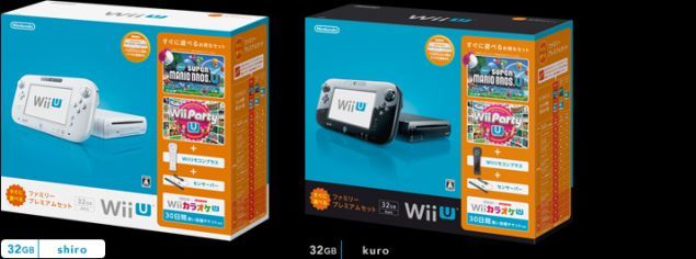 Il primo costa il corrispettivo di 330 dollari (che in euro saranno sempre 330) e prevede la Wii U da 32 GB bianca o nera, New Super Mario Bros U, il Wii Party U, la Sensor Bar, un Wii Remote e 30 giorni gratuiti per il videogioco sul Karaoke. Il secondo bundle costa 350 dollari e, oltre alla console da 32 GB e a tutti gli altri contenuti precedenti aggiunge anche il Fit Meter, per giocare al videogioco sul fitness. Questi due prendono il nome di Wii U Family Bundle ed arriveranno in Giappone il 31 ottobre.