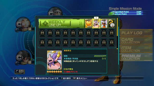 Completando le missioni si ottengono due tipi di ricompense, da un lato ci sono i “Punti Dragon Ball” (DP), che possono essere utilizzati per acquistare oggetti dal Collection Store. Dall’altro, completando le missioni con i rispettivi eventi “Bonus speciale”, si potranno inviare più “GENKI” e in cambio guadagnare “Punti Premium” (PP). Con i PP, i giocatori possono acquistare oggetti unici, come il “Limit Jewel” e molti altri ancora dal Premium Collection Store!