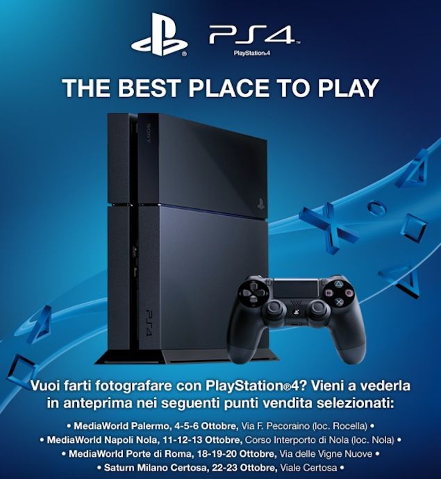 Parte domani (venerdì 4 ottobre) da Palermo il tour italiano di PlayStation 4. Per tutto il mese di ottobre sarà possibile provare la console nei vari punti vendita MediaWorld aderenti all’iniziativa.