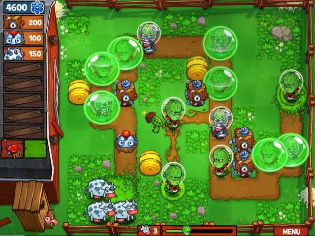 Come tutti i Tower Defense, anche Beware Planet Earth ha un obiettivo preciso: difendere le mucche presso la fattoria di Barney. Per riuscirci, avremo a disposizione dei macchinari il cui stile è ispirato ai giocattoli robot degli anni ’60. L’arena di battaglia è costruita su di una scacchiera divisa in 10×9. I Marziani tuttavia non potranno muoversi liberamente attraverso tutto lo spazio disponibile, bensì dovranno raggiungere le mucche attraversando un percorso specifico, diverso per ogni livello, lungo il quale potremo sviluppare la nostra difesa in maniera strategica. Se gli invasori dovessero riuscire a sottrarci tutte le mucche e a riportarle all’astronave perderemmo la partita e saremmo costretti a rifare il livello. E’ proprio nella gestione degli strumenti di difesa che si notano le somiglianze più rilevanti con Plants Vs Zombies. Dovremmo infatti necessariamente piazzare sul terreno almeno un generatore di ingranaggi, molto simile al girasole, che ci permetterà di accumulare la moneta d’acquisto per prendere le altre macchine. All’inizio di ciascun livello ci verranno mostrate le classi di nemici che successivamente ci attaccheranno. In base a questi ultimi, dovremo scegliere con cura gli strumenti di cui servirci. Avremo sempre a disposizione 3 oggetti di base: la pistola laser, il telecomando e il campanaccio. Il primo svolge diverse funzioni tra cui l’eliminazione di oggetti sul terreno che ci impediscono di piazzare le macchine, come le balle di fieno. Essa può inoltre danneggiare direttamente i nemici, chiudere i passaggi del teletrasporto e potenziare temporaneamente le macchine (che una volta surriscaldate dovranno essere ripristinate con l’apposito annaffiatoio). Il telecomando ci servirà ogniqualvolta vorremo sbarazzarci di una macchina piazzata sul terreno, recuperando così parte degli ingranaggi. Infine il campanaccio si rivelerà uno strumento essenziale per riportare velocemente le mucche alla base. Le categorie di Marziani si diversificano per alcune caratteristiche quali velocità, scudi di protezione e camuffamenti particolari. Il soldato SWAT ad esempio è dotato di scudo antisommossa che ne potenzia notevolmente le difese. La domestica con il suo aspirapolvere può sottrarre gli ingranaggi e tutte le trappole esplosive, mentre lo scienziato pazzo può generare uno scudo protettivo per i compagni nelle immediate vicinanze che potrà essere disattivato solo con la pistola laser.
