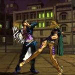 Il gameplay di JoJo’s vede contrapposti due avversari, in scenari ripresi con grande accuratezza dall’opera di riferimento. A disposizione del giocatore ci sono un attacco leggero, uno medio e uno pesante, mentre il quarto bottone del gamepad è dedicato allo spostamento sull’asse, elemento che consente di schivare attacchi dalla distanza spostandosi sulla profondità. Si tratta quindi di un picchiaduro bidimensionale, certo, ma con l’elemento della profondità che normalmente caratterizza i fighting game 3D. Ciascuno dei personaggi presenti nel gioco è classificato in una delle categorie presenti, ovvero Stand, Vampirismo, Energia Concentrica, Mode, A Cavallo, le pose Hamon e la trasformazione Baoh Armed Phenomenon. Questa classificazione determina lo stile di combattimento di base, come nel caso di “A Cavallo” che effettivamente pone il combattente sul dorso di un destriero, oppure quello che avviene con l’attivazione di un ulteriore comando sul pad. Nel caso dei lottatori della categoria Stand, per esempio, la pressione fa apparire le concretizzazioni dei corpi spirituali di ciascuno di loro, che si pongono in leggero secondo piano rispetto agli stessi, e che aprono le porte a nuove combo specifiche per ciascun personaggio. Quella della categorizzazione rappresenta una scelta saggia, che si integra perfettamente con la narrazione del manga, giacché solo dalla terza serie, gli Stand iniziano ad apparire, ed i personaggi provenienti dalle due precedenti avrebbero pagato, in termini di possibilità tattiche, se non avessero potuto contare su valide alternative. Le possibilità degli strampalati lottatori non finiscono qui, in ogni caso. All Star Battle non si fa mancare un indicatore, riempibile subendo o dando colpi all’avversario, indicatore che è possibile usare in maniera tattica attivando attacchi Heart Heat o Great Heat, rispettivamente con un minore e maggiore consumo di energia accumulata. In entrambi i casi si tratta di attacchi spettacolari assai potenti in termini di danno arrecato al nemico, che fortunatamente non richiedono di completare con successo inopportuni quick time event, lasciandoci il tempo di osservarne gli stilosi effetti grafici tranquillamente. In ultimo, l’energia accumulata può essere utilizzata, con un minor consumo rispetto alle abilità speciali, per attivare una super cancel che interrompe istantaneamente le animazioni in corso, così da concatenare attacchi differenti in combo personalizzate, o passare rapidamente in posizione difensiva qualora servisse. Il tutto funziona piuttosto bene, anche se una certa sensazione di lentezza delle animazioni dei personaggi rende il gameplay piuttosto macchinoso, soprattutto quando si tenta di gestire lo spazio con movimenti d’avvicinamento o d’allontanamento rispetto all’avversario. Probabilmente la causa principale di questa percezione è da attribuire in parte al gameplay in se’, in parte al limite di 30 frame per secondo imposto alla produzione, che rende il combattimento ravvicinato meno veloce e quindi meno istintivo di quello apprezzato in altri picchiaduro presentati a 60 FPS. La quantità di mosse e combo a disposizione di ciascun personaggio è anch’essa piuttosto limitata se si fa un confronto con altri concorrenti del genere, mentre è apprezzabile la diversificazione negli stili dei personaggi presenti, ciascuno con tecniche proprie e senza ricicli di sorta. Fortunatamente, quello che si perde in istintività e velocità d’esecuzione, si guadagna grazie ad un combattimento più ragionato e tattico, che richiede di usare saggiamente le specifiche abilità dettate dalla categoria d’appartenenza. Da citare una ulteriore peculiarità del gameplay, che vede la presenza di eventi attivabili all’interno degli stage. Questi vanno da un lampadario che si stacca quando ci si resta sotto troppo tempo, colpendo il malcapitato, fino a bighe con cavalli impazziti pronti ad investire il giocatore più distratto, nel bel mezzo del combattimento. Una simpatica introduzione che rimanda ad alcuni momenti epici della saga, con tanto di scena del manga in bianco e nero, in sovrapposizione sullo schermo.