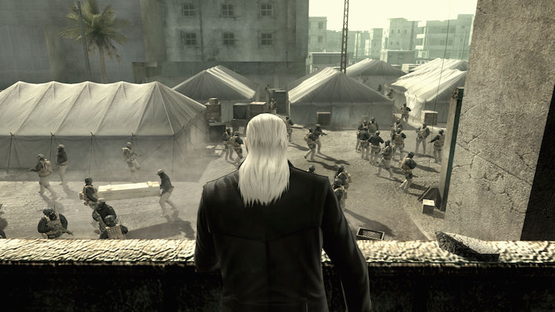 La frase più rappresentativa del gioco, fin dal suo annuncio, è proprio quella che vede Old Snake affermare con sconforto che la guerra è cambiata. Il contesto creato da Hideo Kojima nella nuova esclusiva PlayStation 3, arrivata sul mercato il 12 giugno 2008, rende impossibile dargli torto: dopo l’incidente a Manhattan causato da Arsenal Gear e dopo il crollo della Big Shell (nella timeline del gioco, avvenuto nel 2009), il mondo ha visto il proliferare della militarizzazione, al punto che le economie del pianeta sono ora completamente fondate sulla guerra: è il paradiso delle PMC, le compagnie militari private, composte da professionisti che intervengono su richiesta di nazioni paganti per sedare con la forza bruta qualsiasi tipo di situazione sgradevole. Per assicurarsi dell’assoluta efficacia dei soldati, è stato introdotto il sistema Sons of the Patriots (SOP, da qui in poi), che tramite l’iniezione di nanomacchine nei corpi dei soldati consente di monitornare ventiquattro ore su ventiquattro i loro dati vitali e – molto peggio – di tenere sotto controllo le loro emozioni, in maniera tale da reprimerle. In questo modo, il soggetto può compiere la sua missione senza turbamenti, e sempre grazie a SOP può anche contare sull’assoluta coordinazione dei suoi sensi con quelli dei commilitoni. Mentre, insomma, nei precedenti episodi della saga il grande pericolo era rappresentato da grosse macchine da guerra, la nuova frontiera di Metal Gear Solid è quella che vede i soldati, gli esseri umani, compiere un passo definitivo verso il divenire loro stessi nient’altro che macchine da combattimento, armi prive di emozioni. Ovviamente, il rischio che il proliferare di forze militari e di soldati resi perfettamente stabili nei loro gesti da SOP è evidente: per correre ai ripari, è stato quindi introdotto il sistema di ID Tag: ogni militare è dotato di un codice, e può utilizzare solo ed esclusivamente le apparecchiature militari (che siano armi, torce o veicoli) identificate dal seriale corrispondente. Con questo sistema, quindi, è impossibile il furto di armamenti, e lo Stato ha anche la possibilità di disattivare gli equipaggiamenti di eventuali militari fuori controllo. Quasi come nel periodo della proliferazione nucleare e del diffondersi della teoria della distruzione mutua assicurata viste in Snake Eater, insomma, il mondo di Guns of the Patriots è una polveriera stracarica di armi ed esplosivi, tenuta sotto controllo solo ed esclusivamente da SOP e dal suo ID Tag. Ma cosa accadrebbe se qualcuno riuscisse ad impadronirsi del Sistema?