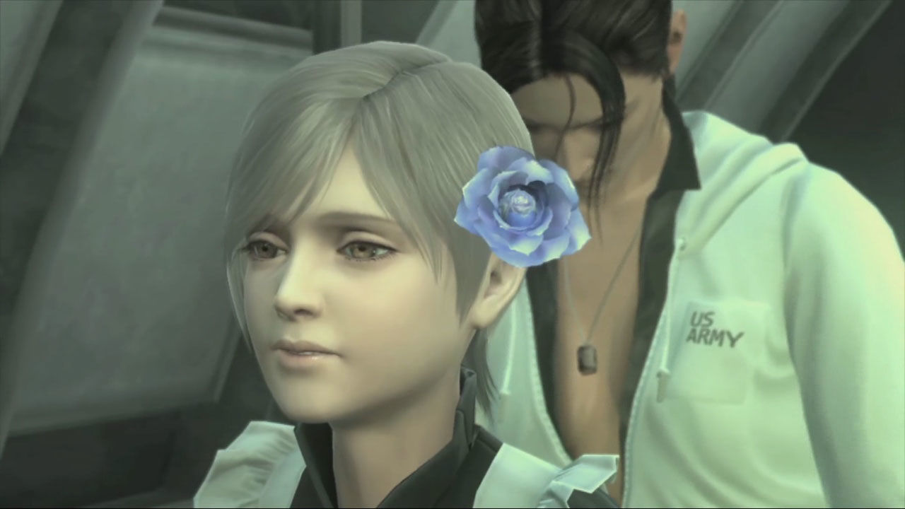 Con tutta la sua innocenza, Sunny si accosta a quello che chiama zio Hal per domandare il perché dell’assenza di Snake. Otacon non riesce a trattenere le lacrime e riferisce semplicemente che “Snake è malato, ha bisogno di tempo per riposare.” La bambina capisce, i suoi occhi grandi e luminosi si voltano verso il cielo ambrato dalle pennellate dipinte dal sole. L’assenza di Snake che è già un vuoto.