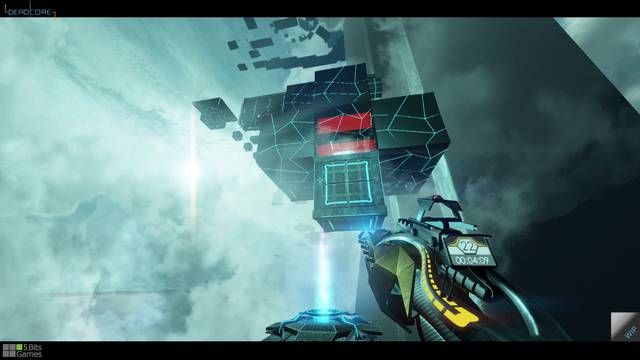 Il sistema di comandi è stato pensato per l’uso obbligato di mouse e tastiera. Il gioco infatti vuole spingere l’utente a migliorare la propria coordinazione mano occhio e la precisione di puntamento sacrificando quindi l’utilizzo del joypad. La scelta ci sembra azzeccata, anche perché certi movimenti non sarebbero facilmente realizzabili con un controller che integra telecamera e movimento. Questa scelta tuttavia potrebbe far storcere il naso ad una larga fascia d’utenza abituata al gaming su console, dove può trovare caratteristiche di gioco simili in Portal. DeadCore non è inoltre dotato di una vera e propria trama, per cui se non si presta attenzione ai file presenti nel menù, il gioco non sembra avere un obiettivo. Sono stati fatti alcuni cambiamenti nel corso dei mesi di testing. La versione Alpha del titolo disponeva di un modello di fucile differente che molti utenti preferivano, e sono stati eliminati numerosi suoni emessi dai robot e dalle torrette che risultavano noiosi. Il gioco ha inoltre cambiato il proprio nome per una serie di questioni legali, passando da DeadLock (che gli sviluppatori apprezzavano maggiormente ma che era già stato usato da altri due platform) a DeadCore. A parte alcuni cambiamenti stilistici comunque la natura è rimasta invariata, e la qualità nel sistema di comandi già sperimentata nell’Alpha si è rivelata anche nell’edizione finale. La gravità sulla torre è differente da quella terrestre ma la sensazione che ne deriva non è di galleggiamento, bensì di elasticità. I salti possono essere gestiti in maniera ottimale riducendo la pressione sui tasti per direzionarli al meglio, ed è possibile spiccare un salto più alto premendo velocemente due volte il tasto designato. La sfida quindi consiste anche nell’imparare a gestire alla perfezione ogni movimento saltando ad esempio da una piattaforma all’altra con precisione anche a grandi distanze.