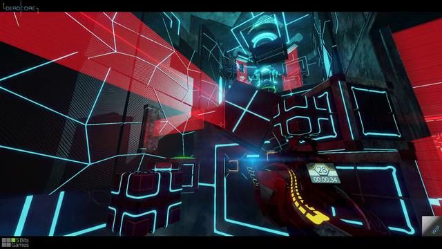 L’idea base del gioco è legata ad una gigantesca torre sospesa in un cielo turbinoso, sovrastante un reticolo di laser mortali. Un immaginario a dir poco bizzarro che ci introduce subito nel cuore dell’avventura. In DeadCore il giocatore dovrà cercare di risalire questa enorme struttura frammentata in innumerevoli piattaforme volanti, corridoi e stanze, cercando di non farsi “espellere” dal sistema di sicurezza. Una volta in cima egli scoprirà la verità che si cela dietro questo scenario surreale e nel corso dei numerosi livelli potrà sbloccare documenti, soundtrack e altri collezionabili. La velocità e la precisione con cui il giocatore esegue le peripezie sono fondamentali poiché basta davvero poco per perdere il ritmo e fallire una sequenza di salti. DeadCore tuttavia non vuole essere una tortura estenuante, anzi, basta prendere confidenza con i comandi e capire quali sono le minacce presenti in una determinata sequenza per adottare la strategia vincente. Il gioco mette a disposizione numerosi checkpoint per livello, per cui si tratta di completare una serie di mini sfide mai eccessivamente lunghe che ci condurranno alla fine dello stage con una buona dose di soddisfazione. Per ogni checkpoint il giocatore avrà a disposizione un fucile laser con 30 proiettili, “spendibili” per disattivare delle torrette laser, neutralizzare le sentinelle o per aprire porte e fermare meccanismi mortali. Inizialmente questi si rivelano decisamente abbondanti e difficilmente ci si troverà a dover ripetere un checkpoint per aver scaricato la propria arma. Successivamente al contrario ogni colpo dovrà essere ben dosato perché il numero di ostacoli aumenterà drasticamente costringendoci a ponderare il ritmo che dovremo adottare.