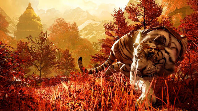 Le meccaniche si mantengono inalterate rispetto al precedente capitolo, proponendo un vasto arsenale sempre ben bilanciato e appagante da utilizzare, scontri a fuoco serrati con una componente strategica interessante e un’incredibile libertà di movimento sia durante gli scontri sia nelle fasi esplorative. La struttura dell’ambiente ora permette di attaccare i gruppi di nemici rimanendo nascosti su un altura diminuendo i rischi di un attacco frontale. Il Kyrat si è rivelato comunque un luogo estremamente selvaggio e pericoloso, e ancora di più rispetto al passato dovremo prestare attenzione alla fauna locale, tra lupi, orsi, tassi del miele e molto altro. La caccia resta una componente fondamentale per il titolo. Uccidendo e scuoiando gli animali otterremo infatti le pelli per costruire fondine, bisacce e altri oggetti fondamentali mentre potremo utilizzare per la prima volta la carne come esca per i predatori più pericolosi. Lanciandola ad esempio vicino ad un gruppo di soldati, potremo attirare una tigre o un orso contro di loro e liberare così la zona. E’ stata inoltre introdotta la possibilità di cavalcare gli elefanti per partire alla carica e compiere delle stragi negli accampamenti nemici. Una novità interessante che aggiunge varietà nelle fasi di conquista degli avamposti ma che non costituisce certo un punto di forza del gameplay poiché diventa necessaria solo nel corso di una missione della campagna. Rimangono purtroppo inalterate le sequenze stealth obbligatorie presenti anche in Far Cry 3, che risultano ancora un po’ troppo macchinose e meno divertenti rispetto alle altre. La componente esplorativa si mantiene invece di altissimo livello, grazie anche all’introduzione della scalata con il rampino a corda, introdotta per raggiungere punti specifici muovendosi nella vasta mappa di gioco. Quest’ultima presenta un’infinità di zone da scoprire, erbe, tesori ed altri oggetti da raccogliere e numerosi avamposti nemici che sarà nostro compito conquistare per liberare dalla tirannia di Pagan Min il popolo kyrati. A differenza del precedente capitolo inoltre, i nemici potranno tentare di riconquistare un avamposto liberato, ovviando così al problema di non avere più nessuno con cui scontrarsi una volta finita l’avventura.