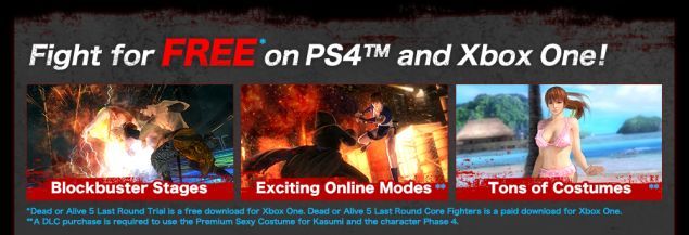 Su PlayStation 4 sarà scaricabile gratuitamente e darà la possibilità di giocare con Ayane, Hayate, Kasumi e Ryu. Darà accesso a delle modalità limitate e prevede lo sblocco, a pagamento, di ogni singola modalità (3,99 euro a personaggio e 12,99 per la modalità avventura), fino al pagamento completo della versione tradizionale.
