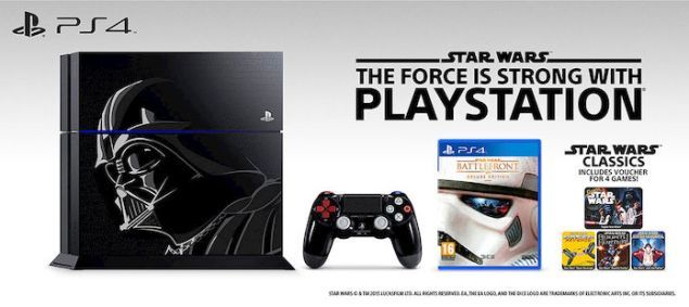 Non poteva di certo mancare, in un periodo così caldo per i fans della saga di Star Wars, un modo per piazzare qualche altra console Sony che non fa mai male. L’offerta in questione, segnalata direttamente dalla pagina Facebook di PlayStation Italia, prevede una console PS4 con Darth Vader da 1TB con la classica dotazione degli altri pack, ma con in più una copia di Star Wars Battlefront Deluxe più un voucher per scaricare 4 giochi della saga di Star Wars: SW Super, Racer: Revenge, Jedi Starfighter e Bounty Hunter. Il prezzo di questo bel regalo di Natale anticipato è di 429,99 euro spedizione inclusa e la consegna sarà possibile a partire dal prossimo 17 novembre.