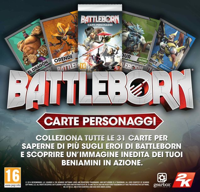 Le carte collezionabili di Battleborn, prossimo sparatutto in prima persona dei creatori di Borderlands, arrivano finalmente in Italia. Saranno disponibili gratuitamente presso i rivenditori aderenti all’iniziativa. Ogni confezione comprende 4 figurine: 3 personaggi di Battleborn + 1 card informativa.