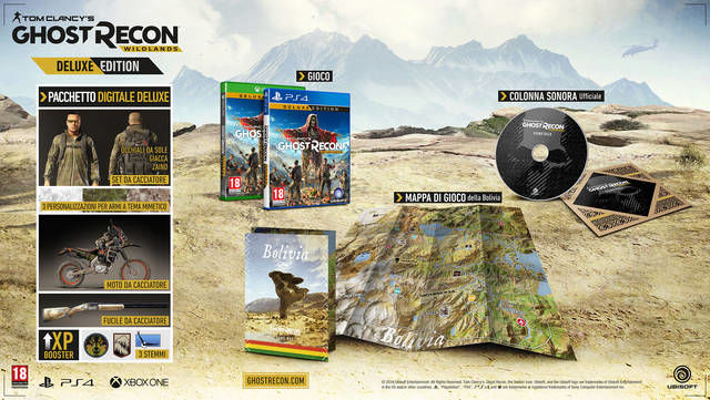 La Calavera Collector’s Case, in esclusiva per Uplay Shop, include tutto l’equipaggiamento necessario per operare come un vero Ghost nel territorio boliviano ed eliminare lo spietato cartello Santa Blanca. Oltre a includere la Gold Edition, consente di giocare con la replica dell’headset originale dei Ghost, funzionante con PlayStation 4, Xbox One e PC. La Collector’s Case include anche un teschio del cartello Santa Blanca, una mappa dello scenario boliviano, la colonna sonora originale del gioco, una tracolla originale del luogo e tre cartoline della Bolivia.