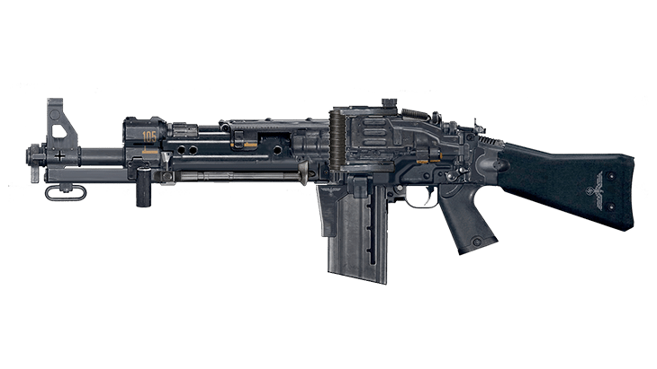 A volte, negli scontri a fuoco, l’efficienza non può basarsi sul concetto di “un colpo, una vita” ma deve rifarsi a quello di “spara più che puoi”. In questi casi, B.J. ha a disposizione la Maschinenpistole, una mitragliatrice leggera dall’impressionante rateo di fuoco. Poche armi sono in grado di ripulire una stanza altrettanto rapidamente di una Maschinenpistole (o due) in mano a B.J.