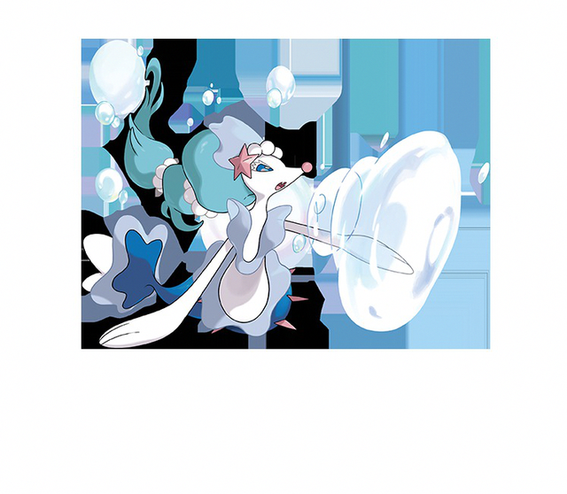 Primarina controlla con la voce un enorme pallone d’acqua e lo fa esplodere sopra al bersaglio, causandogli ingenti danni.