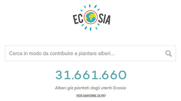 Un anno e mezzo fa Ecosia aveva donato 3 milioni di dollari per interrare 6 milioni di arbusti. Oggi gli alberi piantati superano i 31 milioni. Non so voi, ma tutte le ricerche necessarie per scrivere questo articolo sono state effettuate tramite l’estensione per Chrome di Ecosia. Nel lasso di tempo impiegato per scrivere queste righe, è stata finanziata la messa a dimora di oltre ottomila alberi.