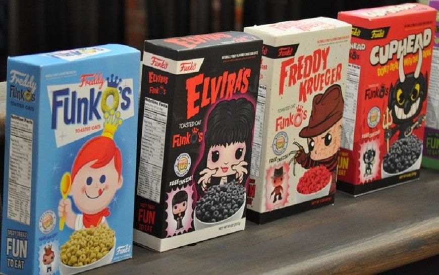 Funko sta rilasciando una linea di cereali chiamata (tanto per restare in tema) FunkO. Proprio come per le statuine, i FunkO avranno delle confezioni apposite che cambieranno a seconda del personaggio presente al suo interno. I cereali invece avranno colori diversi, ma rimarranno sempre a forma della “O” del nome.