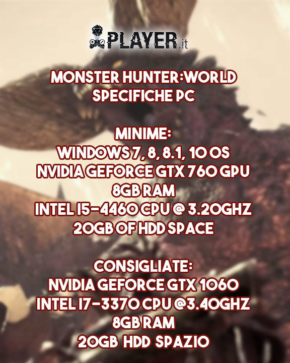 Scopriamo ora insieme data, distribuzione e specifiche minime del miglior Monster Hunter di sempre.