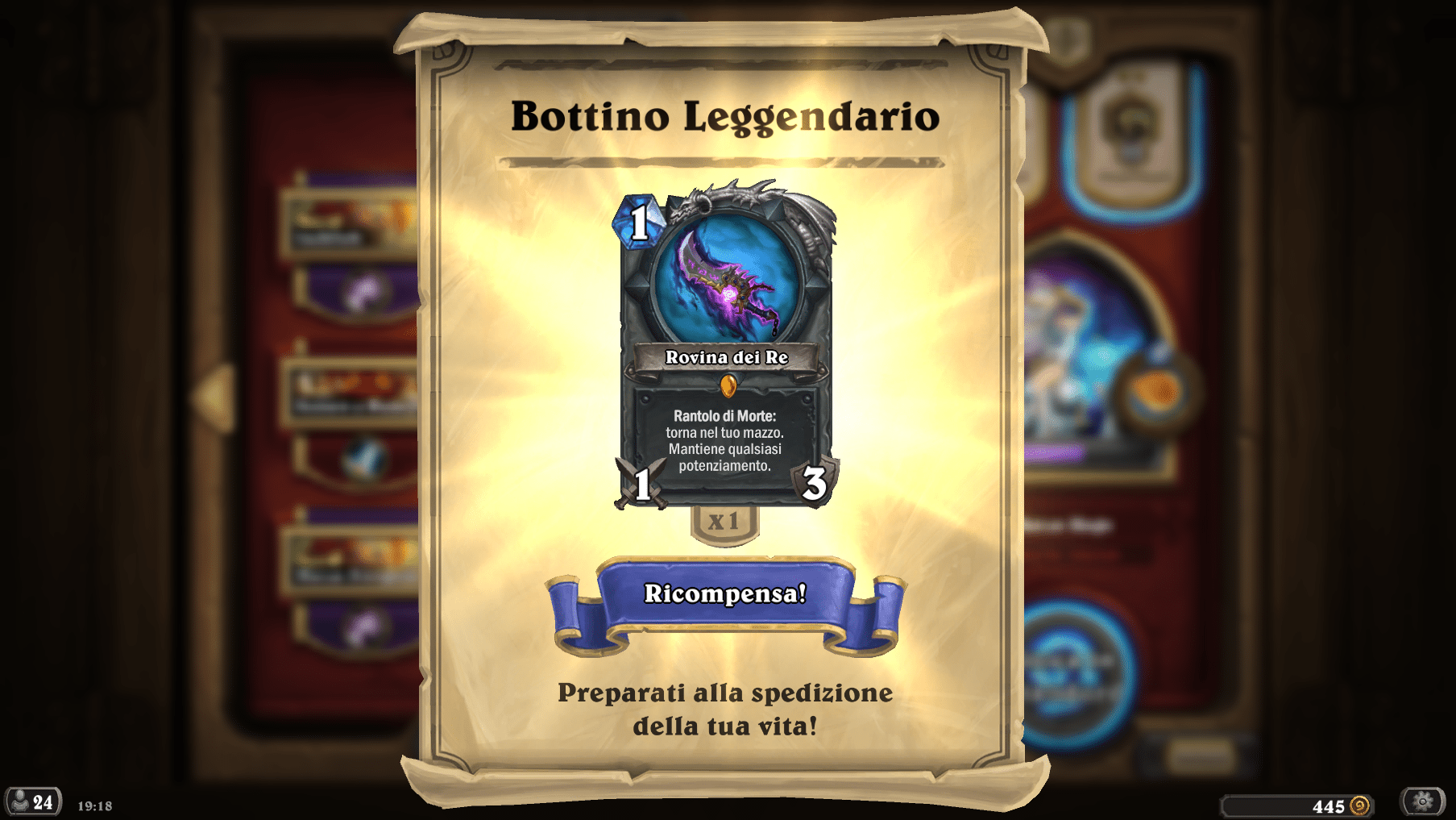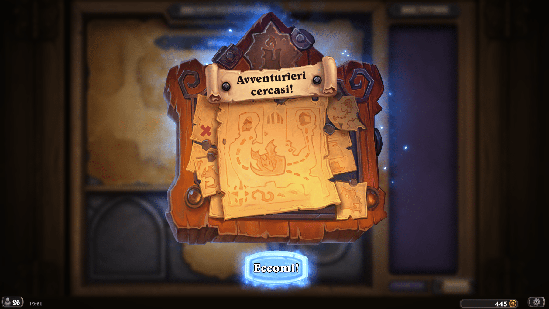 Appena entrati verremo accolti dall’annuncio dell’arrivo dell’espansione e verremo ricompensati con 3 bustine e un’arma leggendaria casuale (Similmente ai cavalieri della morte).