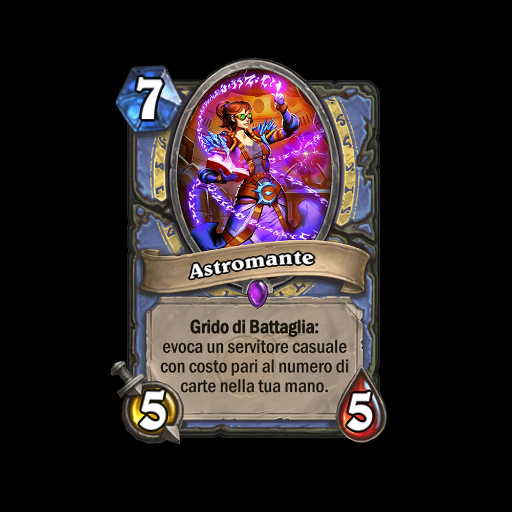 Prima carta mostrata è Scrutastelle Luna, leggendaria del mago che permette di pescare una carta se si lancia la magia all’ estrema destra della nostra mano.