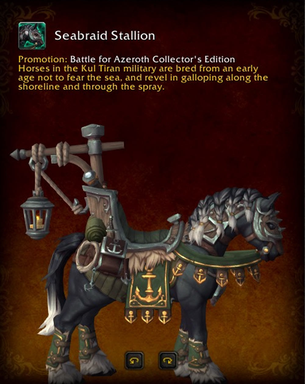 Come vi avevamo anticipato qualche tempo fa, con la Collector saranno incluse due cavalcature una per l’Orda e una per l’Alleanza. Inoltre sarà incluse la Mascotte Tottle, il cucciolo di Tortolla.
