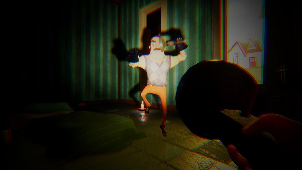Il fascino iniziale, però, del design e dei colori scompare dopo poco, lasciandoci con un vicino molesto (e un po’ buggato) ed una serie di puzzle inconsistenti e frustranti. Il vicino in modo particolare non sembra essere guidato da una routine attorno la quale giocare, non si capisce cosa possa vedere o cosa possa farlo insospettire. Piuttosto sembra programmato unicamente per stanarci a prescindere dalle nostre azioni spesso a discapito della sua stessa casa sfondando le finestre o lanciandoci oggetti da distanze assurde pur di acciuffarci.