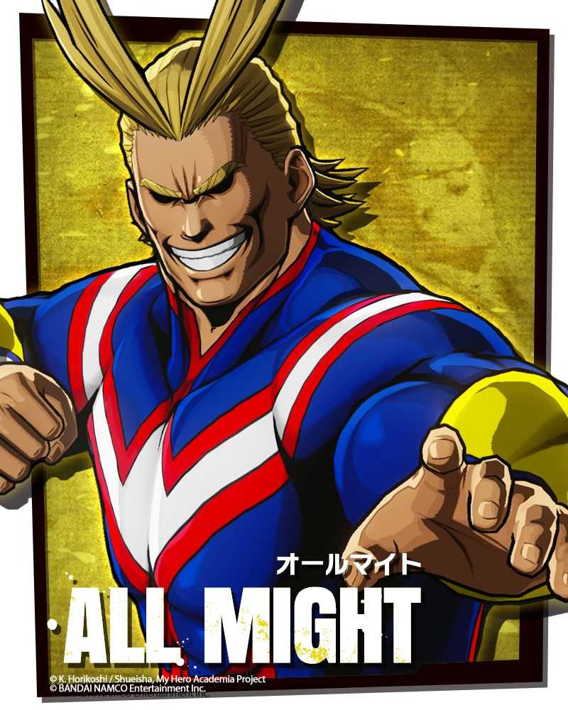 Il nuovo personaggio ad entrare nel roster del gioco è All Might, e non poteva essere altrimenti. Chi conosce l’opera, sa che All Might è l’eroe più famoso di My Hero Academia. È un simbolo di pace e giustizia, e colui che ha ispirato il protagonista Izuku Midoriya a diventare lui stesso un supereroe.