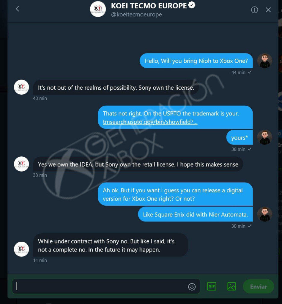 Stando alla conversazione che potete leggere nell’immagine qui in basso, tra non molto tempo anche i possessori di Xbox One potranno imbarcarsi per un’avventura affascinante, in grado di mettere a dura prova i propri riflessi e le abilità in combattimento all’arma bianca.
