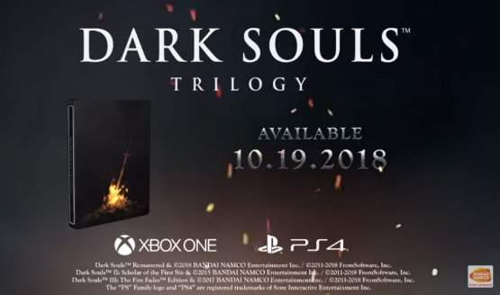 In questa Gamescom 2018 di Colonia Bandai Namco ha annunciato, a sorpresa, l’arrivo di Dark Souls Trilogy: una raccolta dei tre capitoli sviluppati da From Software in versione definitiva (cioè completi di ogni DLC uscito singolarmente) in arrivo il 19 Ottobre (stesso giorno di release di Dark Souls Remastered per Nintendo Switch) per Playstation 4 e Xbox One.