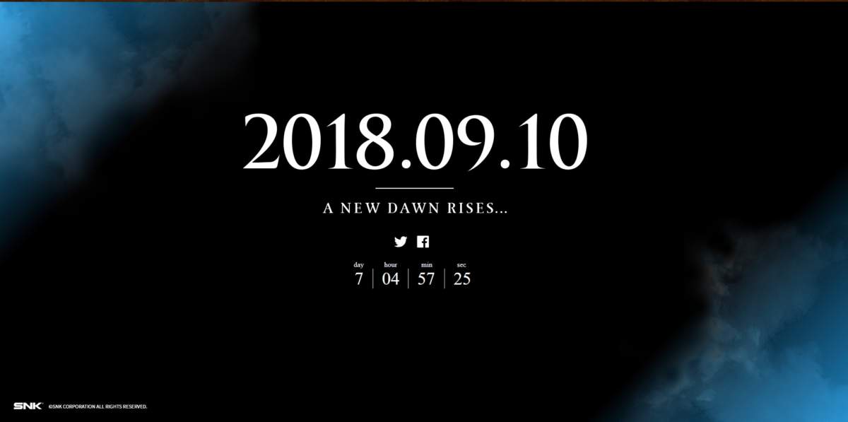 Il 10 Settembre 2018 una nuova alba sorgerà , recita il testo del sito senza tirare in mezzo immagini o brand di riferimento. Qualsiasi cosa ci sarà alla fine del countdown creato da SNK andrà online trenta minuti dopo la presentazione della line-up di Playstation del pre-Tokyo Games Show.
