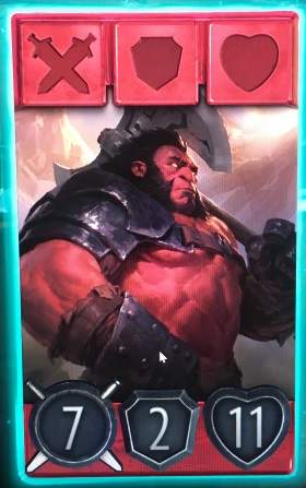 - Rosso: Il colore rosso è un colore delle dimensioni e dell’aggressività; carte in grado di fungere sia da attacco che da difesa grazie alle statistiche importanti e alle abilità in grado di farli resistere più del dovuto sul campo di battaglia. Gli eroi di questo colore possiedono grandi quantità di HP, Difese e punti attacco peccando in versatilità e in capacità di essere utili al di fuori della loro zona d’influenza.