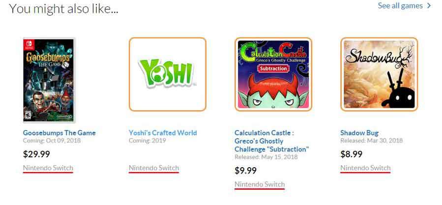 “Yoshi Crafted World” appare nel sito di Nintendo.com come titolo nella sezione giochi per Nintendo Switch, sotto la categoria “Potrebbe anche piacerti…”.