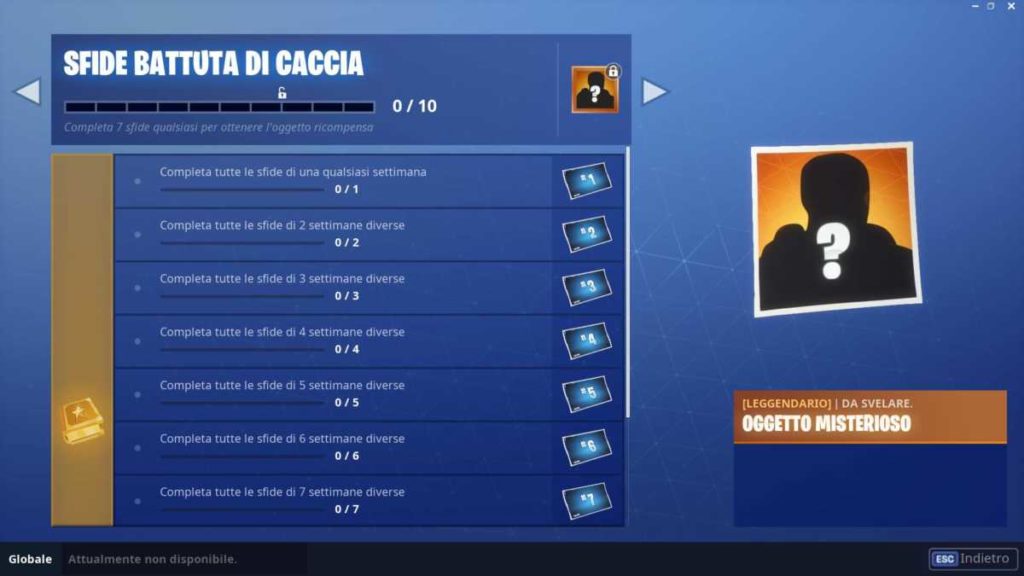 Le sfide battuta di caccia sono una serie di sfide comparse all’interno di Fortnite insieme al nuovo Pass Battaglia. Queste sfide permettono al giocatore di ottenere una serie di dieci oggetti misteriosi completando tutta una serie di sfide settimanali incluse all’interno del pass battaglia.