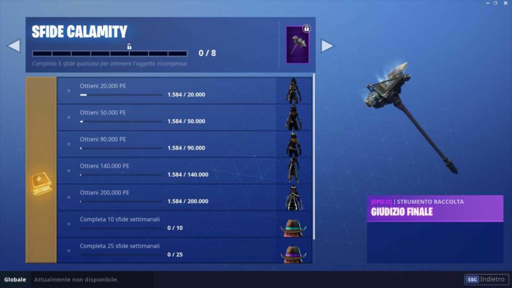 Le sfide Calamity sono una serie di sfide comparse all’interno di Fortnite insieme al nuovo Pass Battaglia. Queste sfide permettono al giocatore di ottenere ulteriori oggetti di abbigliamento e stili per le proprie skin completando compiti come l’ottenimento di determinati valori di punti esperienza o il completamento di un dato numero di sfide settimanali.
