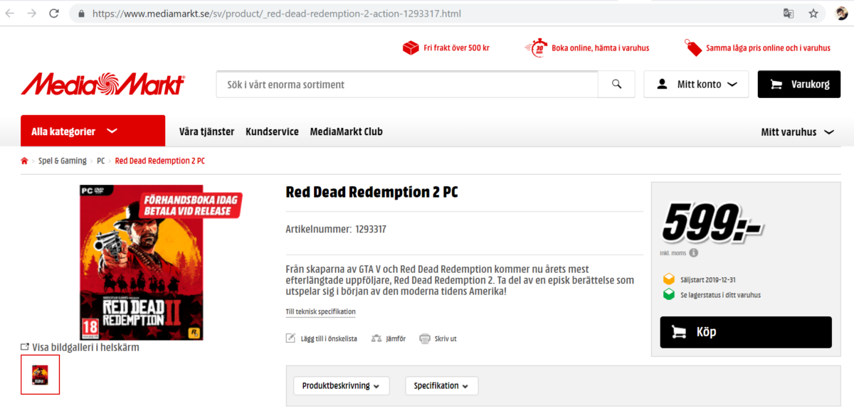 MediaMarkt segnala l’arrivo di Red Dead Redemption 2 su PC.
