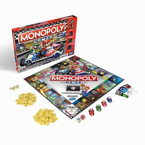 A queste si aggiungono le due versioni di Monopoly Gamer, pensate per il mondo geek e per tutti gli appassionati di videogiochi più in generale. Al celebre tabellone del gioco, noto per la contrattazione e la compravendita immobiliare, vengono aggiunti i caratteristici elementi di Mario Kart, perfettamente mixati per dare vita a partite nuove di zecca ed ugualmente entusiasmanti. Opportunità ed Imprevisti lasceranno il posto a Pannelli Acceleratori e Super Stelle, ed i fastidiosissimi blocchi di pietra Twomp e le caselle Scatole di Oggetti sostituiranno le classiche stazioni.