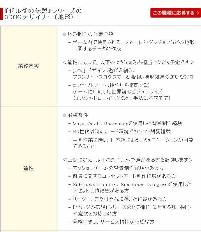 Tra i requisiti consigliati c’è anche qualcosa che suona più o meno come “esperienza nella creazione di sfondi specifici per un gioco d’azione” oltre che una certa esperienza pregressa con il mondo di The Legend Of Zelda.