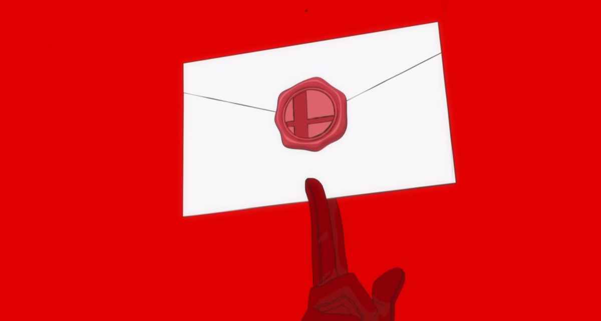 Infine, ecco comparire una busta bianca, un invito recante il sigillo di Super Smash Bros. Ed il pubblico intero impazzisce.