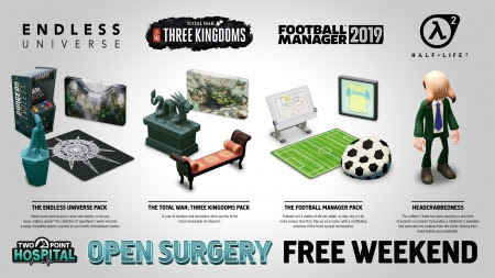Il weekend gratuito durerà fino alle ore 18:00 italiane di lunedì 18 marzo. Poco prima la chiusura del gioco gratuito, esattamente alle ore 16:00 sarà reso dispoinibile il secondo DLC del gioco Pebberley Island, che aggiungerà tre nuovi ospedali, alcune modalità inedite, malattie ancora più strambe e tanti altri contenuti a tema tropicale.