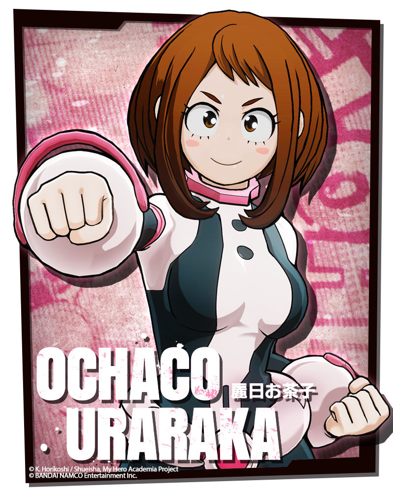 Ochaco Uraraka, una delle amiche più strette di Deku, è esuberante, cerca sempre un modo per ispirare le persone e vorrebbe diventare un eroe per offrire una vita migliore ai suoi genitori. La sua Unicità le dà il potere di manipolare la gravità.