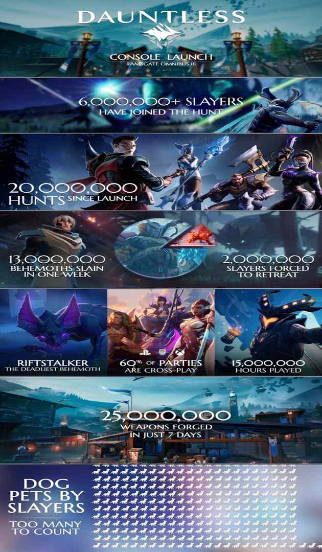 Ad una settimana dal suo rilascio ufficiale Dauntless, il videogioco free-to-play di caccia cooperativo ispirato a Monster Hunter, ha superato gli oltre 6 milioni di download tra PS4, Xbox One e PC.