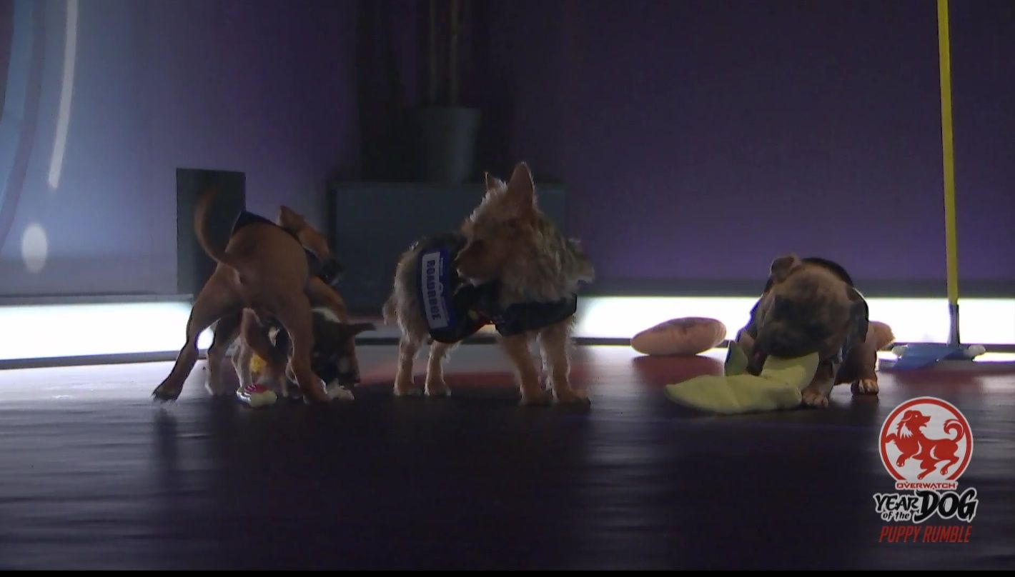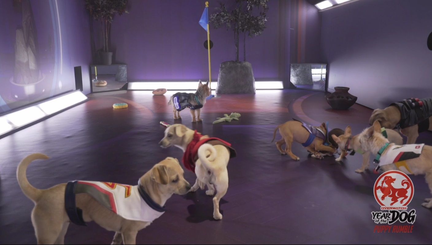 Proprio come i migliori giocatori della Overwatch League, ogni cucciolo ha ricevuto una presentazione con tanto di background ed eroe preferito (indicato da pettorine a tema). Divisi in due squadre i cagnolini si sono sfidati nella mappa in miniatura cercando di portare a casa la bandiera/osso posta prima degli avversari. I commentatori si sono divertiti nel comentare i match allo stesso modo di una normale partita di Overwatch ed il risultato è stato esilarante. E’ risaputo che la Blizzard è sempre stata impegnata con numerose campagne di beneficenza e con questo evento simile al Puppy Bowl (evento analogo che si tiene durante il Super Bowl) dimostrato ancora una volta la loro dedizione all’impegno sociale dando spazio a numerose organizzazioni in giro per gli Stati Uniti. Di seguito alcuni screenshot della diretta.