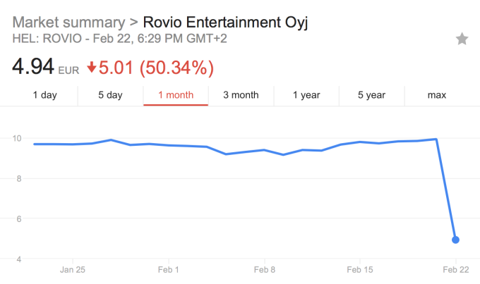 Il prezzo delle azioni dello sviluppatore di Angry Birds è diminuito del 50% dopo che la società aveva condiviso le sue previsioni riguardo ai profitti per l’anno solare 2018.